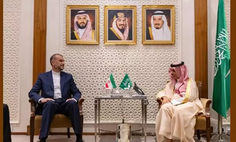 text_fieldsറിയാദിലെത്തിയ ഇറാൻ വിദേശകാര്യ മന്ത്രി ഹുസൈൻ അമീർ അബ്ല്ലാഹിയെ സൗദി വിദേശകാര്യ മന്ത്രി അമീർ ഫൈസൽ ബിൻ ഫർഹാൻ വരവേറ്റപ്പോൾ