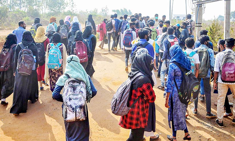 മംഗളൂരു, ഉഡുപ്പി, ശിവമൊഗ്ഗ, കുടക്, കലബുറഗി, വിജയപുര, യാദ്ഗിർ തുടങ്ങിയ വിവിധ സ്ഥലങ്ങളിലെ കോളജുകളിൽ ശിരോവസ്ത്രത്തിന് വിലക്കേർപ്പെടുത്തിയതിനെതിരെ ബുധനാഴ്ച രക്ഷിതാക്കളുടെയും വിദ്യാർഥികളുടെയും പ്രതിഷേധമുണ്ടായി. ശനിവാരശാന്തെയിലെ ഭാരതി വിദ്യാസമസ്തെ കോളജ് എന്നീ കോളജുകളിലും മറ്റു സ്കൂളുകളിലുമായി 100 ഓളം പേരെ തിരിച്ചയച്ചു.