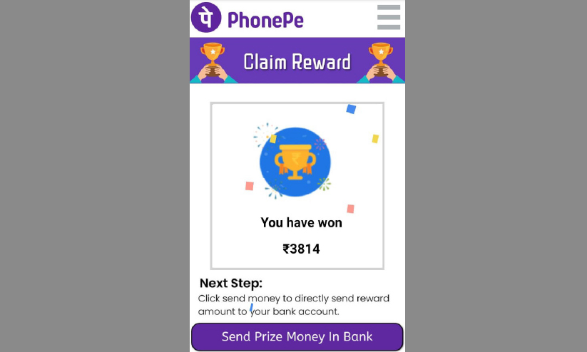 ഫോൺപേ ഇടപാടുകാർക്ക് സാധാരണ അഞ്ചുരൂപ മുതൽ 1000 രൂപവരെയാണ് സ്ക്രാച്ച് കാർഡിലൂടെ ലഭിക്കുന്നതെങ്കിൽ മൂവായിരത്തിലധികം വരുന്ന തുക സമ്മാനമായി ലഭിച്ചെന്നായിരിക്കും ഇവിടെ ലഭിക്കുന്ന വിവരം. സമ്മാനം ലഭിച്ചെന്ന് അറിയിക്കുന്നതിനൊപ്പം 'സെൻഡ് പ്രൈസ് മണി ടു യുവർ ബാങ്ക്' ഓപ്ഷൻ തെരഞ്ഞെടുക്കാനും നിർദേശം ലഭിക്കും. സമ്മാനത്തുക ബാങ്ക് അക്കൗണ്ടിൽ ലഭ്യമാക്കുമെന്നാണ് ഇതിലൂടെ അറിയിക്കുന്നത്. ഇതുകണ്ട് ഓപ്ഷൻ തെരഞ്ഞെടുത്തു കഴിഞ്ഞാൽ അടുത്ത ഓപ്ഷനിൽ ക്ലിക്ക് ചെയ്യാൻ ആവശ്യപ്പെടും. 'ഡെബിറ്റ് ഫ്രം ദ അക്കൗണ്ട്' എന്നായിരിക്കും ഇതിലെഴുതിയിട്ടുണ്ടാകുക. എന്നാൽ, ഇടപാടുകാർ ഇത് ശ്രദ്ധിക്കാതെ ക്രെഡിറ്റ് ടു ദ അക്കൗണ്ട് എന്നാണെന്ന് കരുതി ഓപ്ഷൻ തെരഞ്ഞെടുക്കുന്നതോടെ പണം സ്വന്തം അക്കൗണ്ടിൽനിന്ന് നഷ്ടമാകും.