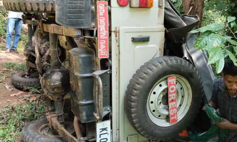 കണ്ണംകുഴിയിൽ കാട്ടാന വനപാലകരുടെ ജീപ്പ് ആക്രമിച്ചു; രണ്ടുപേർക്ക് പരിക്ക്
