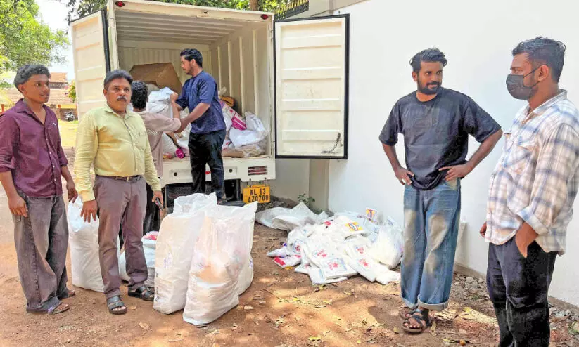 text_fieldsജില്ല എൻഫോഴ്സ്മെന്റ് സ്ക്വാഡ് പുതിയതെരുവിൽനിന്നും പിടികൂടിയ ഒരു ക്വിന്റൽ നിരോധിത പ്ലാസ്റ്റിക് കാരിബാഗുകളും പേപ്പർ കപ്പുകളും