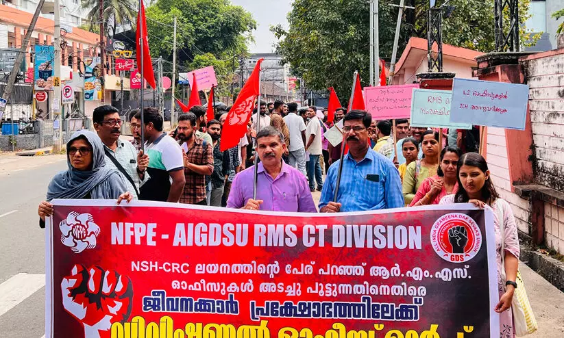 ആർ.എം.എസ് ഓഫീസുകൾ അടച്ച് പൂട്ടുന്നതിനെതിരെ ജീവനക്കാരുടെ പ്രതിഷേധ മാർച്ച്