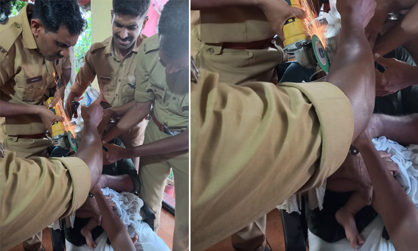 അഗ്നിരക്ഷാ സേന അംഗങ്ങൾ ഒരുപാട് നേരം പണിപ്പെട്ടാണ് ഗ്രൈൻഡിങ് മെഷീൻ ഉപയോഗിച്ച് കുട്ടിയെ രക്ഷപ്പെടുത്തിയത്. അസിസ്റ്റൻറ് സ്റ്റേഷൻ ഓഫിസർ ഇസ്മായിൽ ഖാന്റെ നേത്യത്വത്തിൽ സീനിയർ ഫയർ ആൻഡ് റെസ്ക്യൂ ഓഫിസർ ആർ.വി. സജികുമാർ, ഫയർ ആൻഡ് റെസ്ക്യൂ ഓഫിസർമാരായ സി.പി. അൻവർ, വി.പി. നിഷാദ്, എ.എസ്. പ്രദീപ്, കെ.എം. മുജീബ്, കെ. അഫ്സൽ, വി. നിസാമുദ്ദീൻ, കെ.ടി. സാലിഹ് എന്നിവരാണ് രക്ഷാപ്രവർത്തനം നടത്തിയത്.