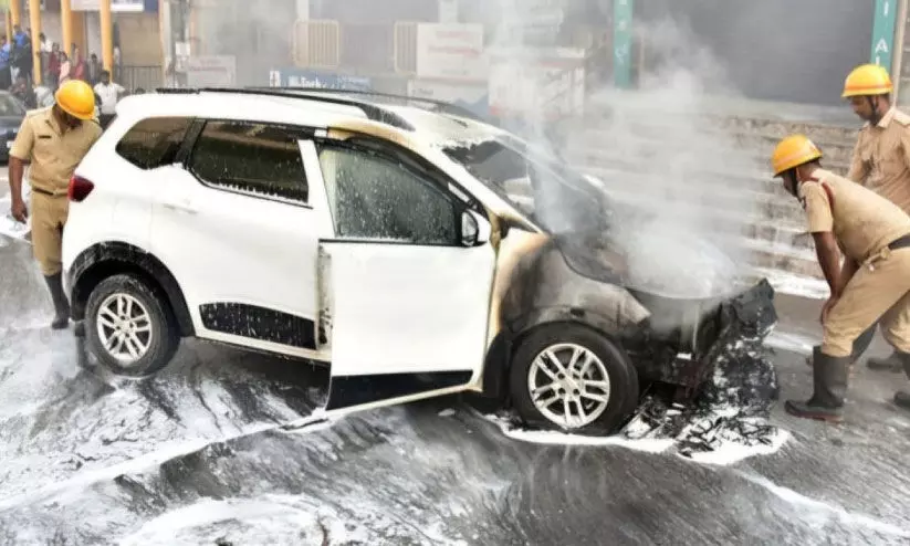 കെ.എസ്.ആർ.ടി.സി ബസ് ടെർമിനലിന് സമീപം കാറിന് തീപിടിച്ചു