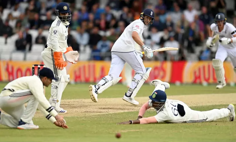 text_fieldsലീഡ്സ്: കളി നയിച്ചും മഴ നനച്ചും ഭാഗ്യം ഇരുവശത്തും മാറിനിന്ന ഇന്ത്യ- ഇംഗ്ലണ്ട് ആദ്യ ടെസ്റ്റിൽ ജയം ആതിഥേയർക്കൊപ്പം നിന്നു. അഞ്ച് വിക്കറ്റിനാണ് ഇംഗ്ലണ്ട് ആദ്യ അങ്കം ജയിച്ച് കയറിയത്. ഇന്ത്യ ഉയർത്തിയ 371 റൺസ് പിന്തുടർന്ന ഇംഗ്ലണ്ടിനായി സെഞ്ച്വറിയുമായി ബെൻ ഡക്കറ്റും (149), അർധ സെഞ്ച്വറിയുമായി സാക് ക്രോളിയും(65) ജോ റൂട്ടും (53*) ചേർന്നതോടെ ലക്ഷ്യം അനായാസം മറികടന്നു. സ്കോർ: ഇന്ത്യ -471&364, ഇംഗ്ലണ്ട് -465 & 373.