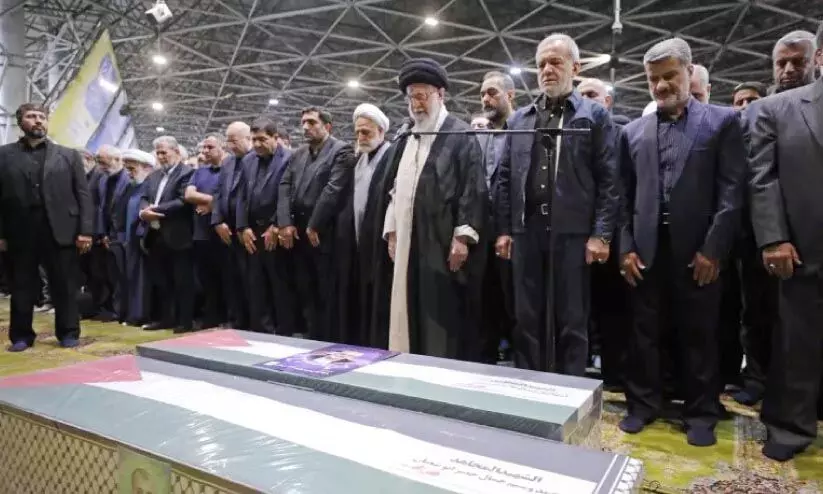 text_fieldsതെഹ്റാൻ: ബുധനാഴ്ച ഇറാൻ തലസ്ഥാനമായ തെഹ്റാനിൽ കൊല്ലപ്പെട്ട ഹമാസ് നേതാവ് ഇസ്മാഈൽ ഹനിയ്യക്ക് ഇറാനിൽ പതിനായിരങ്ങളുടെ അന്ത്യാഞ്ജലി. വിലാപയാത്രയിലും മയ്യിത്ത് നമസ്കാരത്തിലും പതിനായിരങ്ങൾ പങ്കുകൊണ്ടു.